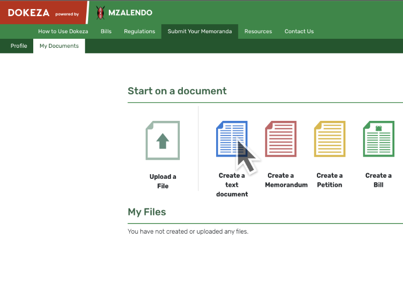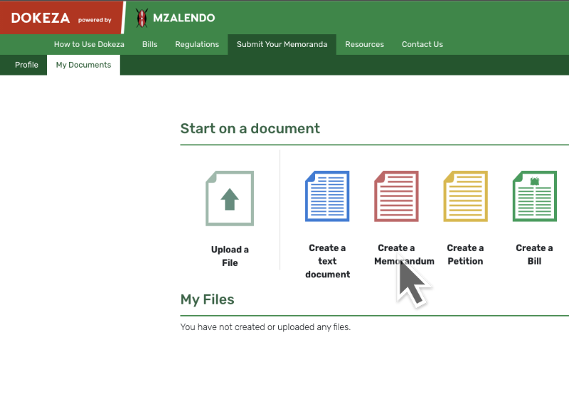 1. Click on the "submit your Memoranda" button and you will be directed to your profile page with the "My Documents" page open.